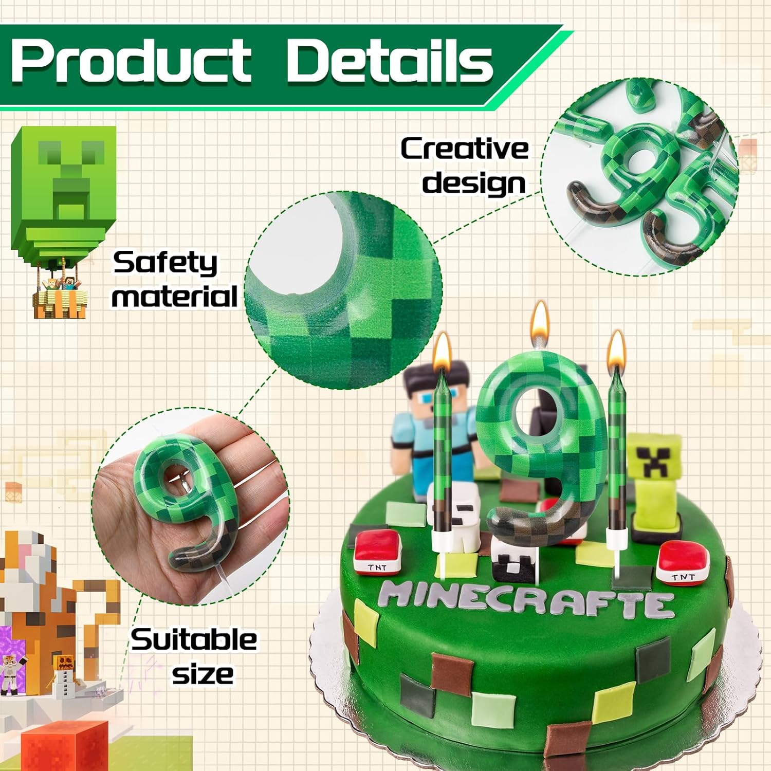 - Multiple Occasions: You can use these candles in many occasions birthday cake, such as birthday party, theme party, summer party, pixel theme birthday party, anniversary party, dynamite theme party, Video Game Party, these candles can show your good taste