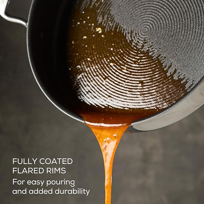 - CONVENIENT FEATURES: This high-performance collection spares no expense attending to the details with often-overlooked but immeasurably convenient features like flared rims for easy pouring and to protect the edges from everyday dings, ergonomic stay-cool handles, nonstick coated interior rivets, and shatter-resistant oven-safe lids.
