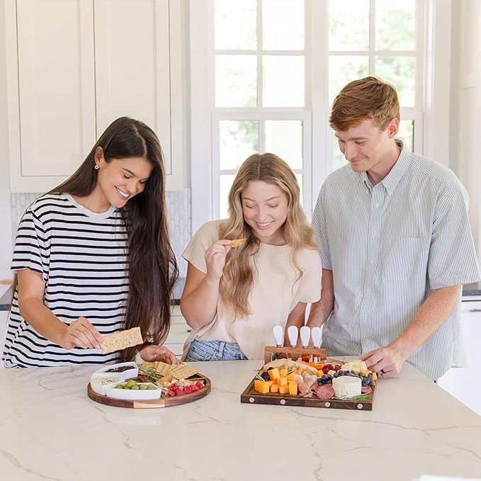- ๐๐ฎ๐๐ถ๐น๐ ๐๐ฟ๐ฒ๐ฎ๐๐ฒ ๐ฎ ๐ฆ๐ต๐ผ๐-๐ฆ๐๐ผ๐ฝ๐ฝ๐ถ๐ป๐ด ๐ฆ๐ฝ๐ฟ๐ฒ๐ฎ๐ฑ: With this wood cheese board set, you'll be able to craft a beautiful display of soft and hard cheeses, tasty cured meats, fresh fruits, desserts, and more; Guests wonโt just enjoy the food, theyโll be impressed by the presentation.