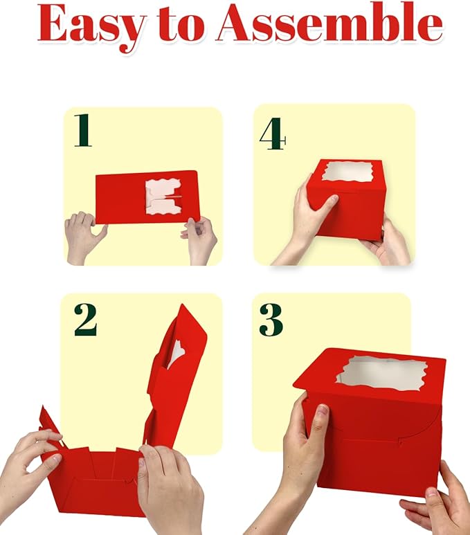 Bakepacker 36pcs 6x6x5 Inches Cake Boxes with Window 18-Packs Red Cake Boxes 6 Inch Bakery Boxes (18 Cake Boxes +18 Cake Boards Included)