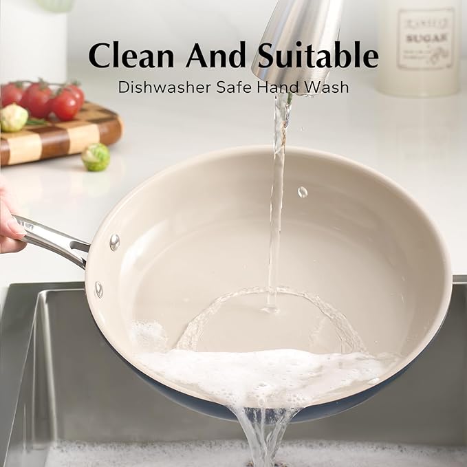 - DURABLE & EASY TO CLEAN: After your culinary masterpiece is complete, a gentle wipe-down followed by a rinse with water will do the trick. For added convenience, you can also opt for a quick and easy dishwasher cleanup cooking pans. (Keep in mind that hand washing is a recommended option if you wish to prolong the lifes of the skillet pan's coating.)