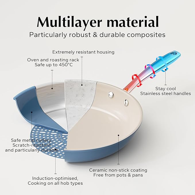 - CERAMIC NON-STICK COATING: Our innovative cooking surface undergoes a triple-layer ceramic coating process, durable and totally safe. The nonstick frying pans excels in delivering outstanding nonstick performance, enabling you to prepare your favorite dishes with minimal oil or butter usage