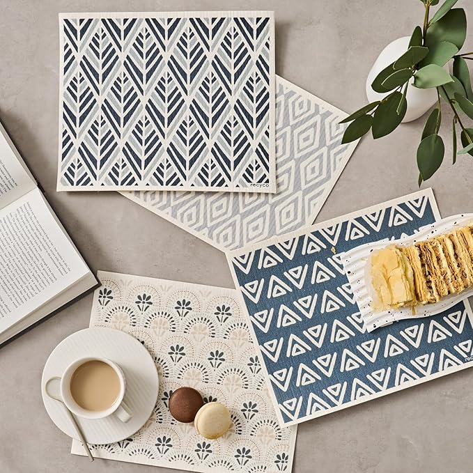 - Unique Patterns & Great Value: Our kitchen towels dish cloths come in 4 pieces value pack with a variety of well-thought patterns & colors for you to choose from. Elevate your cleaning game with great functionality, sustainability & aesthetics today.