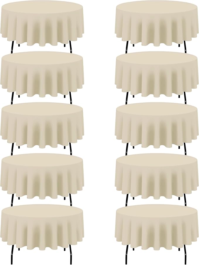 BRILLMAX 10 Pack Beige Round Tablecloths 90 Inch - Circle Bulk Linen Polyester Fabric Washable Table Cloth Cover for Wedding Reception Banquet Birthday Party Buffet Restaurant