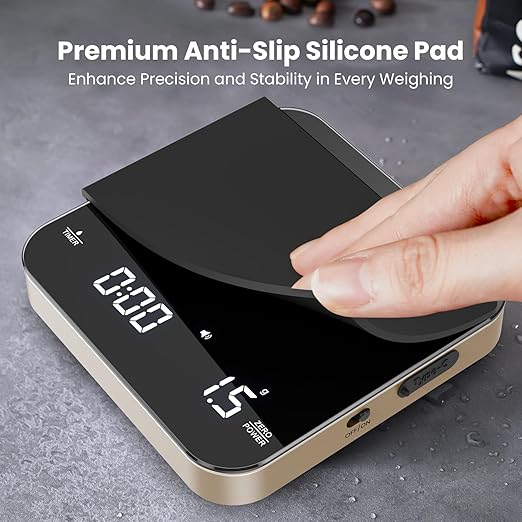 - 【Silent Brewing】Experience a tranquil coffee morning with our coffee scale's Mute Function. Press and hold the TIMER and ZERO buttons for approximately 2 seconds to deactivate the beeping sound, allowing you to enjoy a peaceful start to your day