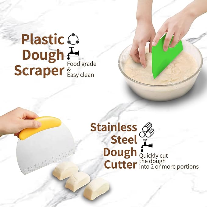 - Practical bread baking tools:The sourdough kit provides all the essential tools needed to shape and bake your dough to perfection. Whether you're a novice or an experienced baker, these tools are indispensable for creating beautiful, delicious bread. Additionally, it makes for a perfect gift for any baking enthusiast on special occasions such as Mother's Day, Father's Day, Christmas, Thanksgiving, and Halloween.