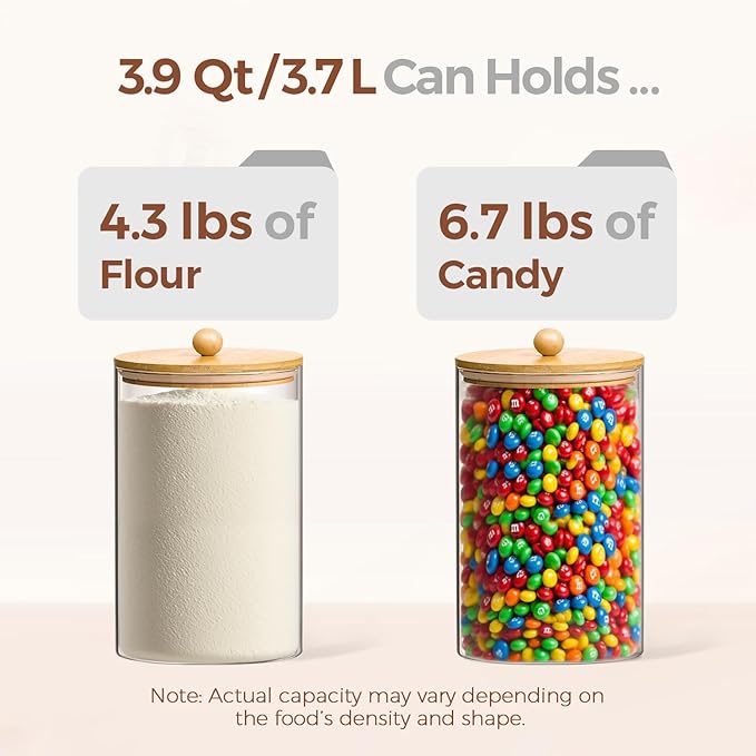 - Versatile Glass Jars: This multifunctional candy jar can store cookie, nuts, sugar, cereal, coffee beans, dog treat, or bath salt for your kitchen or laundry room; Its adaptability makes it an excellent choice for glass containers with lids
