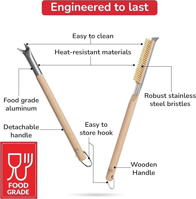 - Durable Materials: With heat-resistant, robust stainless steel bristles and food-safe aluminum, the set promises exceptional performance and longevity, ensuring the tools withstand rigorous use and high temperatures.