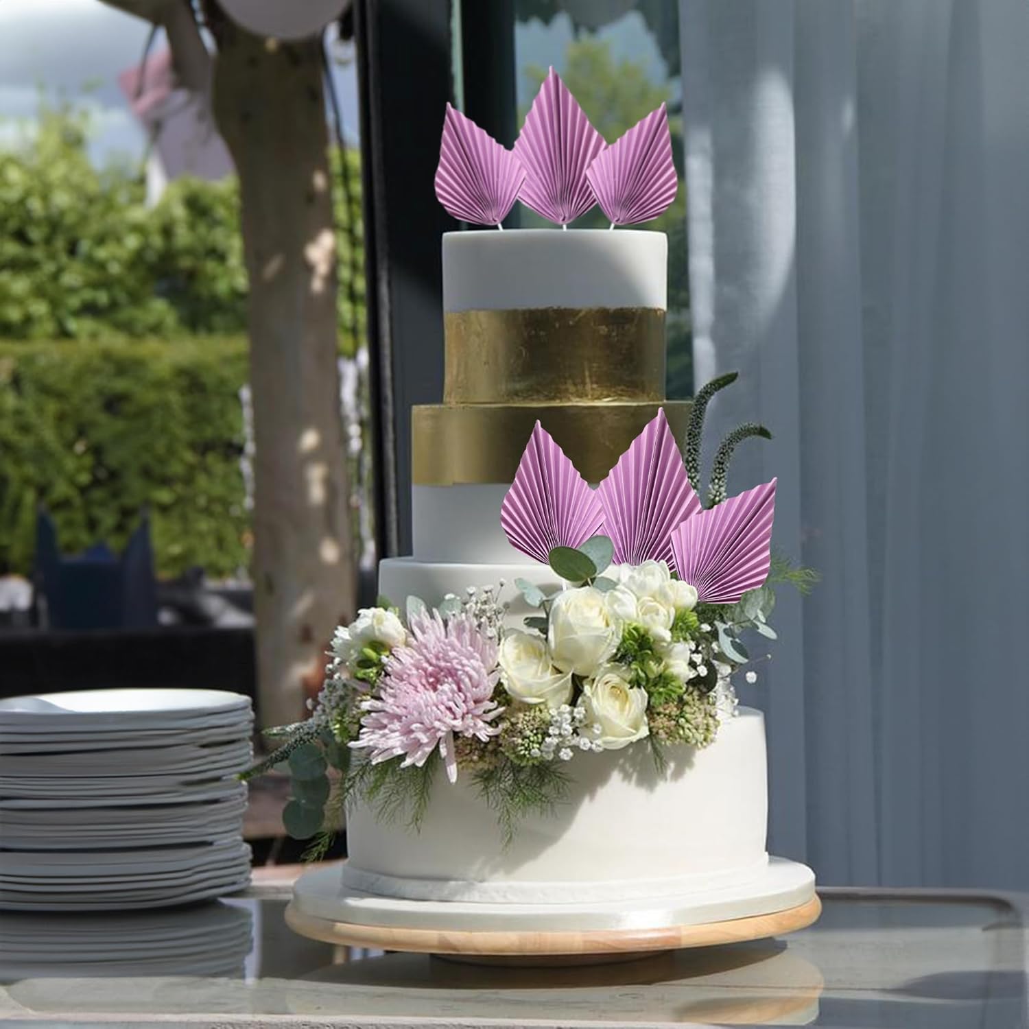 - -Package included: 6Pcs Paper Palm Fan Cake Toppers. Comes with unassembled, so you can insert into your cake with stick, which make your cake more interesting.