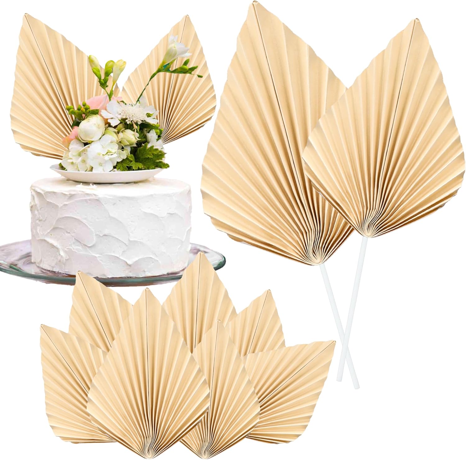 Gyufise 6Pcs Paper Palm Fan Cake Toppers Palm Leaf Fan Cake Topper Palm Spear Leaf Cupcake Toppers Cake Insert Decoration For Cake Decorating Diy Craft Project Home Wedding Party Supplies Beige