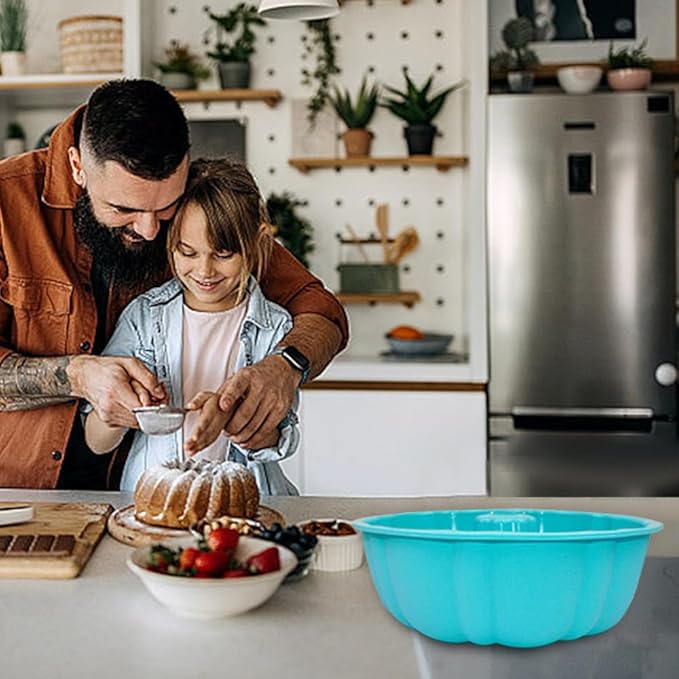 10 inch Silicone Bundt Cake Pan, Non-Stick Silicone Fluted Pans, ome Baking DIY Cake Mold for Cake, Jelly, Bread, Chocolate, Para Gelatinas (Red) (Blue, 1 Pack)