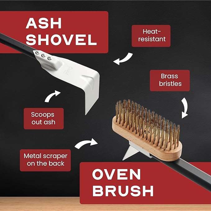 - đăPerfect BalanceăThe kit features a 9-inch pizza turning peel with a non-stick surface and a 40" wood-handle brass brush, perfect for home ovens and grills. Complete your pizza accessories collection.