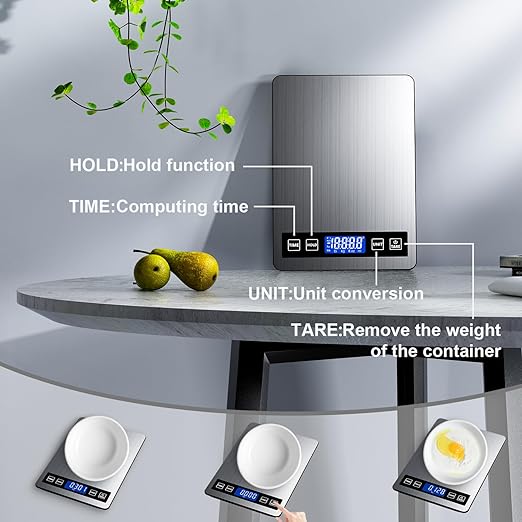 - 【EASY TARE / ZERO 】 Convenient tare button for tare calculation allows you to subtract the weight of plate or container, making it easy to achieve accurate readouts of ingredients.
