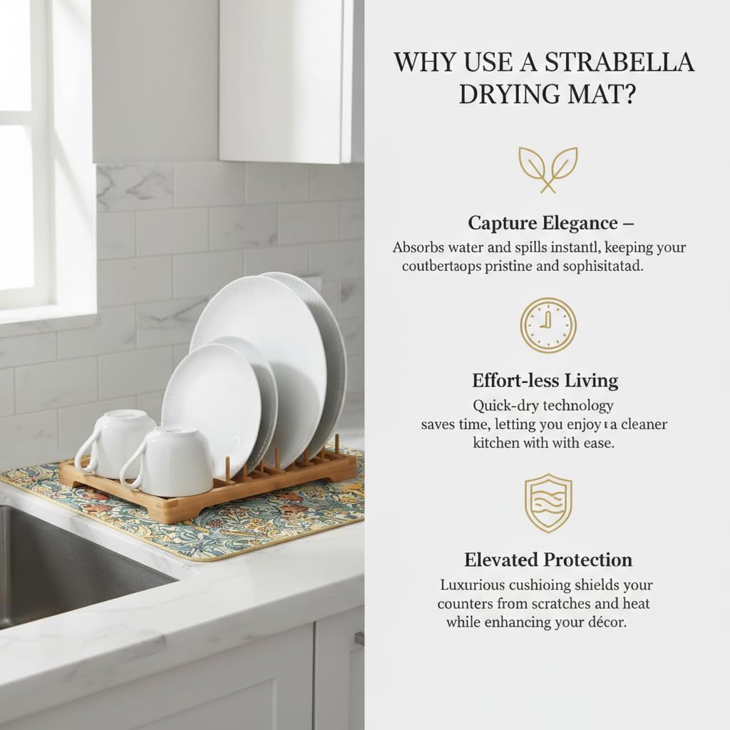 - EXCEPTIONAL ABSORBENCY: Experience the superior absorbent power of our Dish Drying Mat, designed to quickly soak up moisture from freshly washed dishes, ensuring a faster and more efficient drying process.