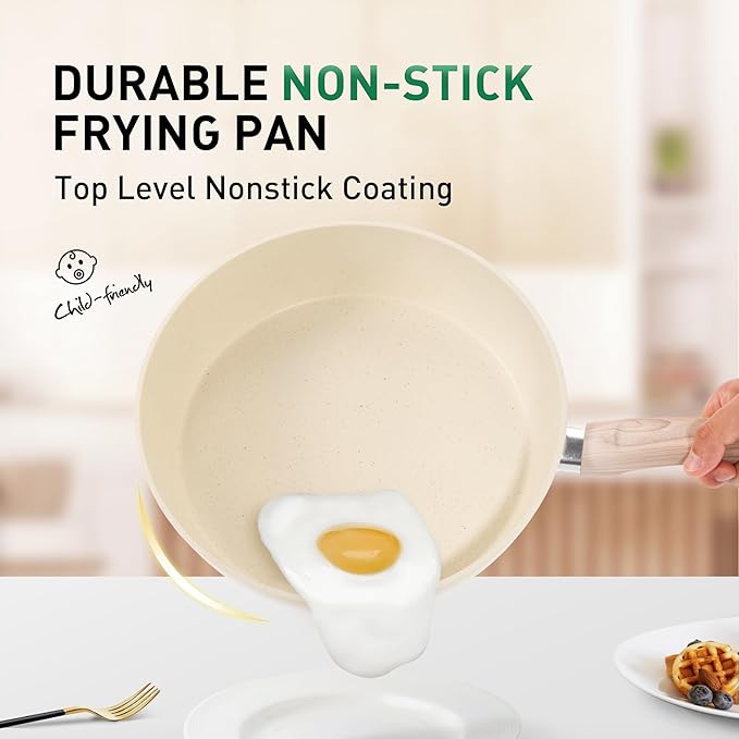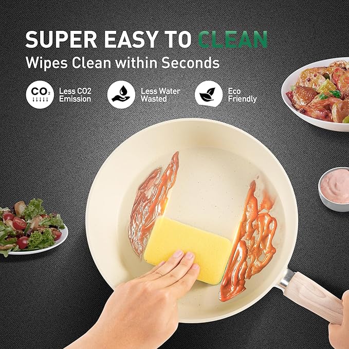 - Healthy Non-Stick Granite Coating: Our pan set interior & exterior is coated by high performance non-stick granite coating, which makes the nonstick skillet easy to cook and clean. It means minimum oil or butter useing for healthy diet cooking and easier do a better cooking