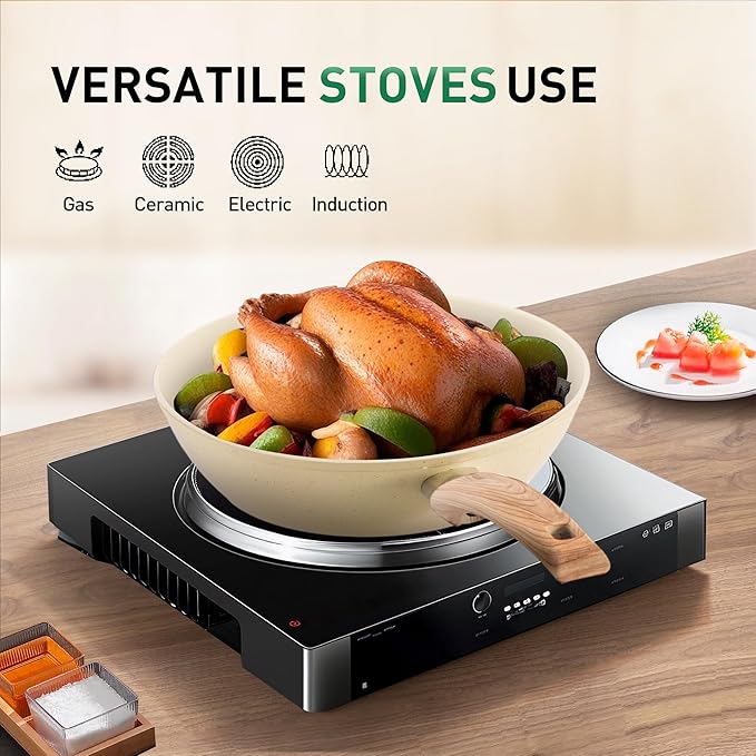 - Heats Quickly & Evenly: This cookware uses professional grade aluminum core that conducts heat quickly and evenly with precise temperature control, which will save time and energy. This induction frying pan set can adopts various cooking methods to make delicious food to satisfy your stomach