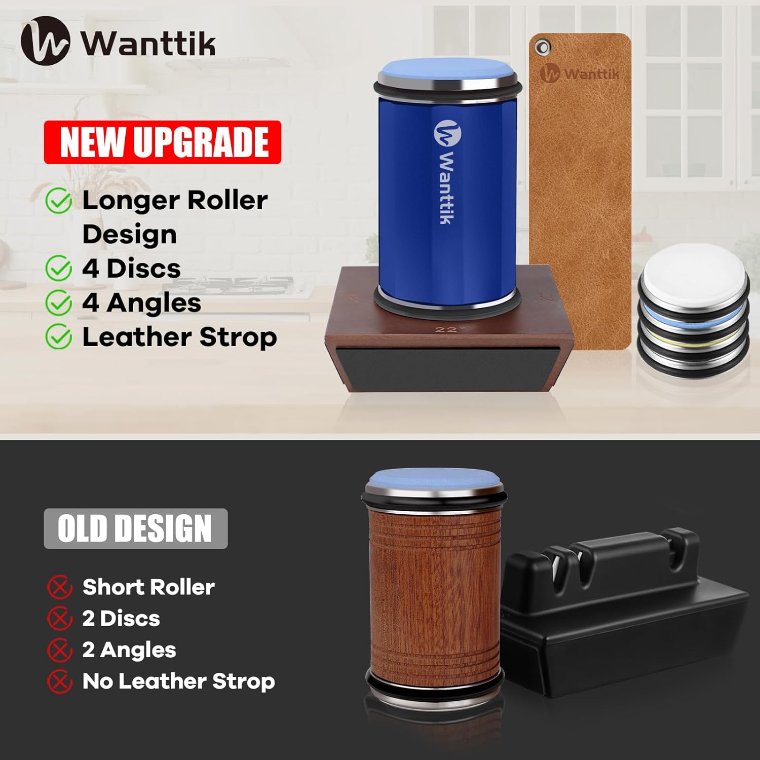 - 【Easy & Long-Lasting Sharpness】 - The WANTTIK Roller Knife Sharpener sharpens your knives accurately and keeps the blade as sharp as new for a long time. It's easy to use and quick to get started.