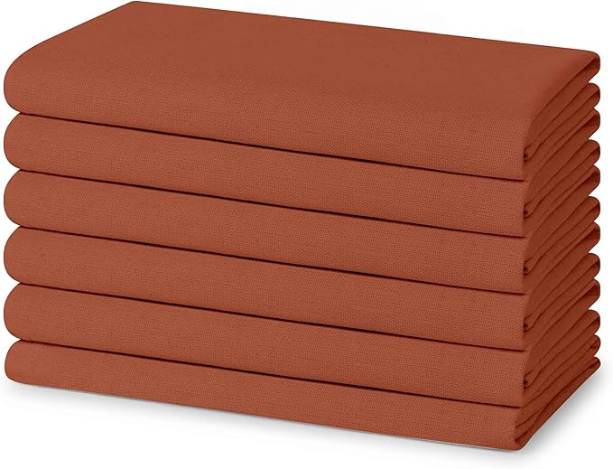 Blue Needles Solid Cloth Napkins Set of 6 Rust 100% Cotton Dinner Napkins 18x18 inches - Soft, Reusable, Absorbent & Washable Fall Thanksgiving Linen, Ideal for Events, Parties & Everyday Use