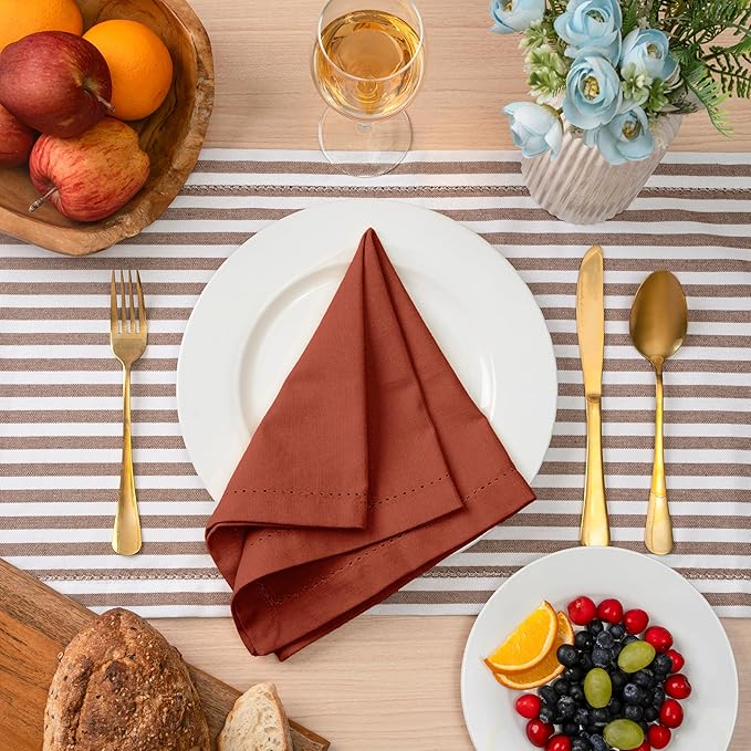 Blue Needles Set of 12 Hemstitch Linen Napkins 100% Cotton Rust Cloth Dinner Napkins 18x18 inches, Soft, Reusable, Absorbent, Washable, Ideal for Fall Thanksgiving Events, Parties & Everyday Use