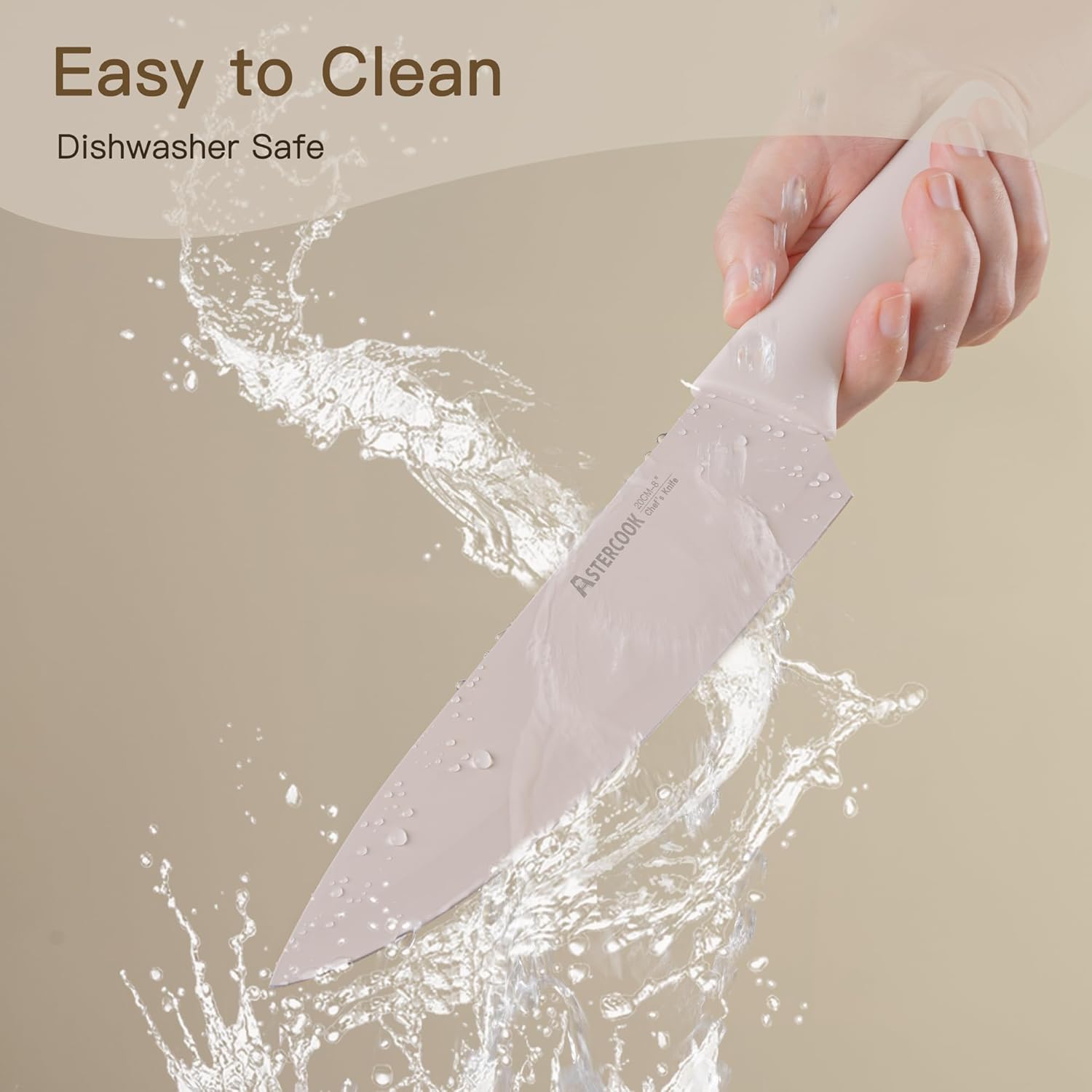 Astercook Knife Set, 13 Pieces Kitchen Knives Set with Healthy Anti-Rust Coating, Dishwasher Safe, Stainless Steel Chef Knife Sets with 6 Blade Guards, Perfect Holiday Gifts for Kitchen