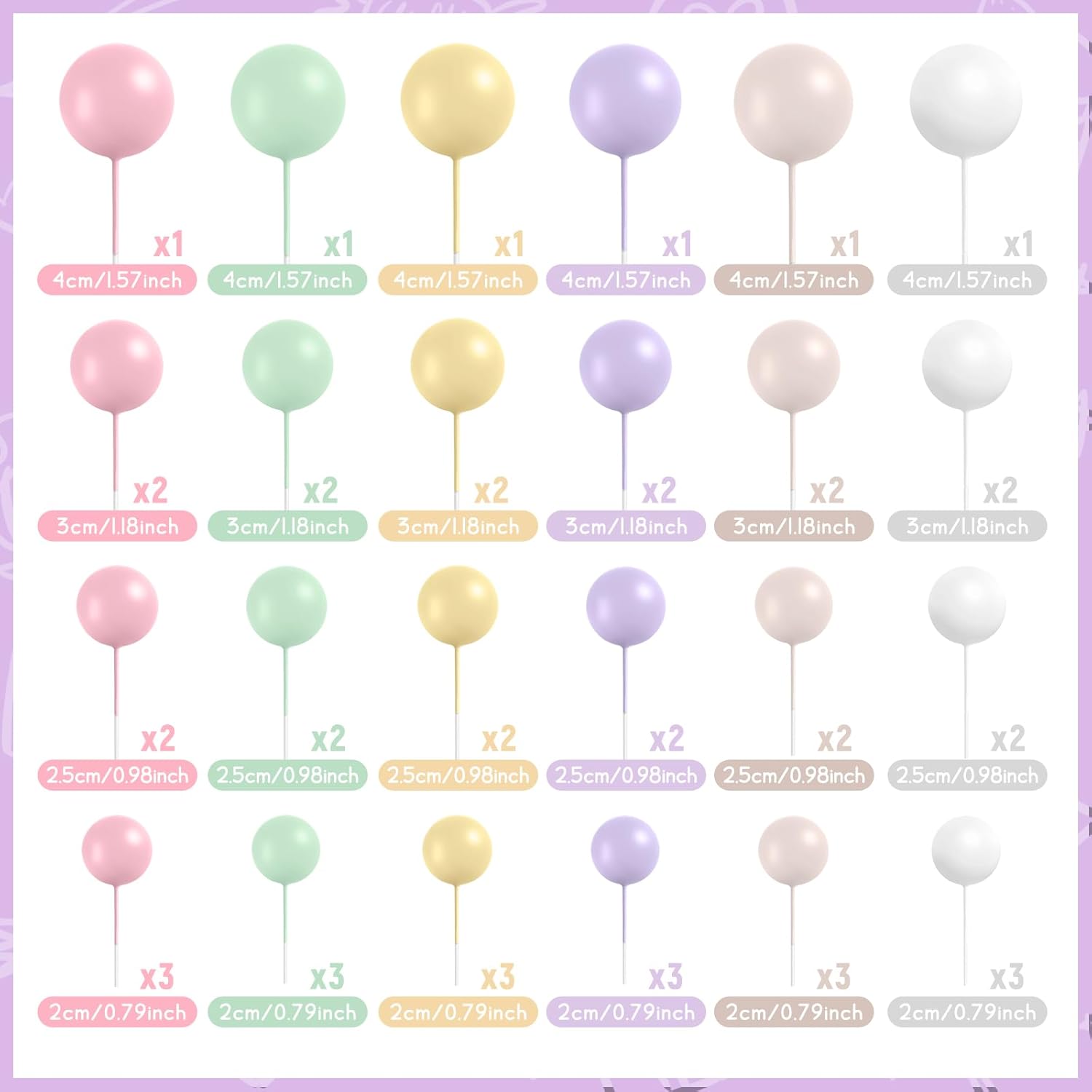 48 Pcs Balls Cake Topper Decorations Balloon Cupcake Toppers Foam Cake Topper Balls Cake Balls Decorations for Birthday Party Wedding Cake Decorating(Pink,Green,Yellow,Purple,Brown,White)