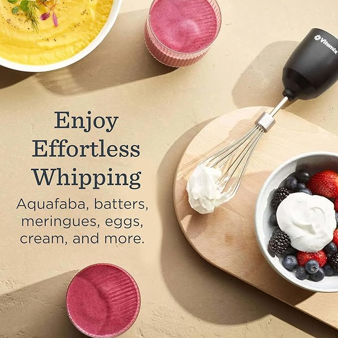 Vitamix 2-Speed Immersion Blender + Whisk Attachment, Professional-Grade Hand Blender with 350-Watt Motor and Stainless-Steel Blade, Black