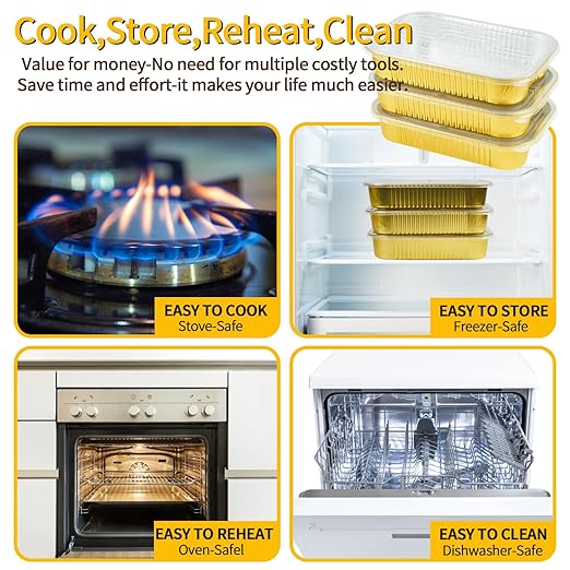 - 【Reusable and eco-friendly】These gold disposable foil containers are also reusable! While most foil pans are disposable, our baking pans are sturdier than regular silver foil pans and won't deform easily. Perfect for restaurants, delis, family events, buffet-style parties, BBQs, picnics, camping, holidays, catered events and all occasions. Safe for use in the oven, stovetop, grill and freezer. Great for hot pots, steaming tables, hot buffets or just to place on the table as serving trays.
