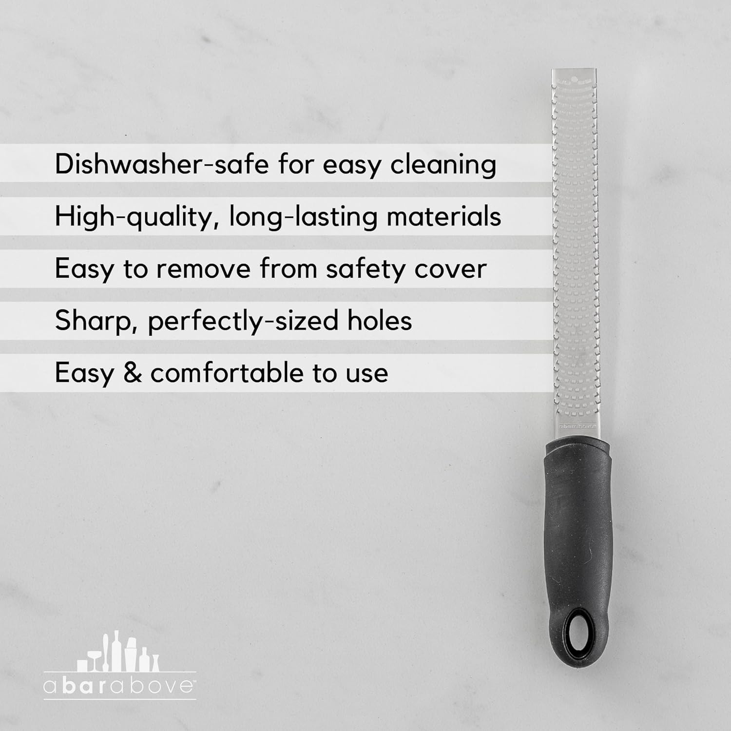 A Bar Above Cheese Grater & Lemon Zester-Chef-Grade Stainless-Steel Citrus Rasp, 12″ Hard-Cheese Grater for Parmesan, Ginger, Garlic, & Cocktail Garnish