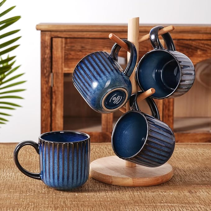 famiware Coffee Mugs Set of 4, Starlight 11 oz Mug Cup Set with Handle for Coffee, Tea, Cocoa, Milk - Ceramic Stoneware Mug Set, Nebulas Blue
