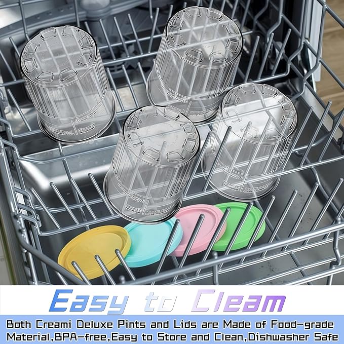 - 【4 Pack Pints and Lids】This set includes 4 pints and lids,These additional pints on hand is extremely convenient,Family size xl deluxe pints ensuring easy transformation to a soft serve delux creamy texture within minutes in every creami deluxe pints.