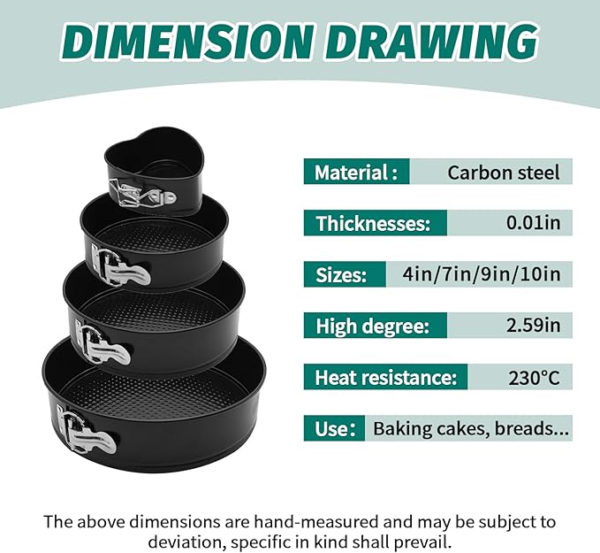 - 【Baker’s Friend 】: Set includes (4-inch,7-inch,9-inch) springform pan,deep cake pan set lets you bake everything better for perfect results with cheesecake, brownie, deep dish pizza, lasagna, casserole, and quiche.