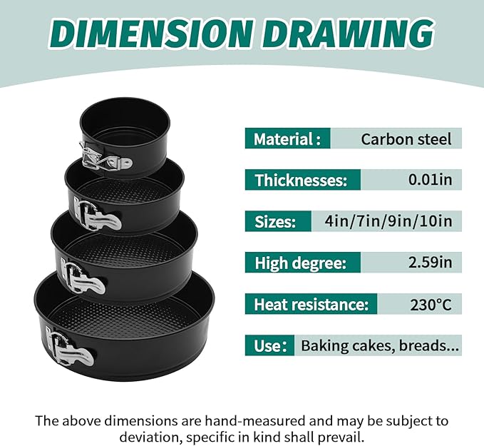 - 【Baker’s Friend 】: Set includes (4-inch,7-inch,9-inch) springform pan,deep cake pan set lets you bake everything better for perfect results with cheesecake, brownie, deep dish pizza, lasagna, casserole, and quiche.