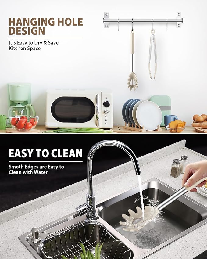 - Special Design: The high-quality stainless steel is more sturdy and keeps you away from the trouble of kitchen utensils rusting or breaking. The anti-scald silicone handle is not easy to conduct heat and is more comfortable to hold than traditional utensils. While you enjoy a happy cooking time, you can better protect your hands from being scalded