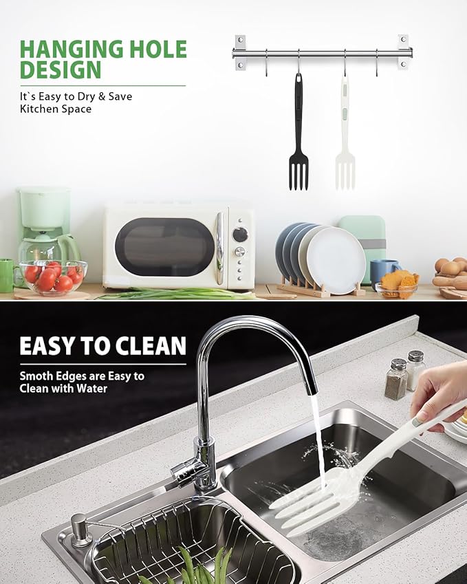- Anti Slip Design: each silicone cooking utensil is designed with a reasonable handle that makes you grip comfortably when using, does not bring you a feeling of fatigue, and adopts a shovel head support point on the handle that is convenient for you to directly put it on the edge of the bowl, not easy to slip, giving you a satisfactory user experience.