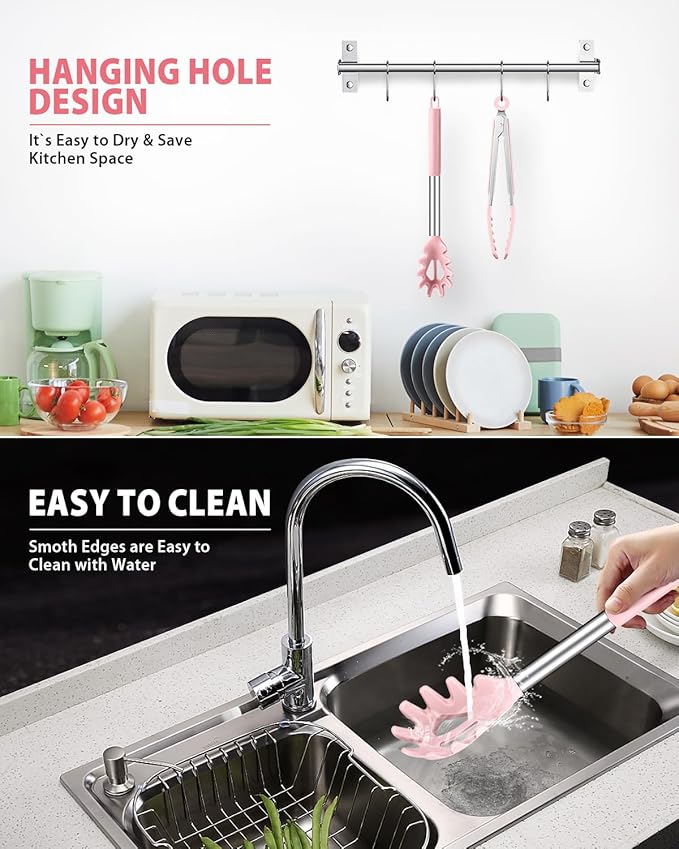 - Silicone Pasta Tong: We pay more attention to the safety of product materials. Our kitchen utensils are made of food-grade silicone, free of BPA.The design of the tooth-shaped heads makes it easier about you to pick up the spaghetti without dropping it