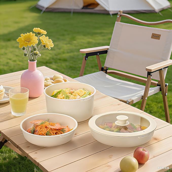 JEETEE Pots and Pans Set Non Stick 19pcs, Kitchen Cookware Sets with Detachable Handle, Induction Nonstick Cookware Set with Removable Handle, Stackable RV Cookware, Oven Safe, PFOA Free, Beige