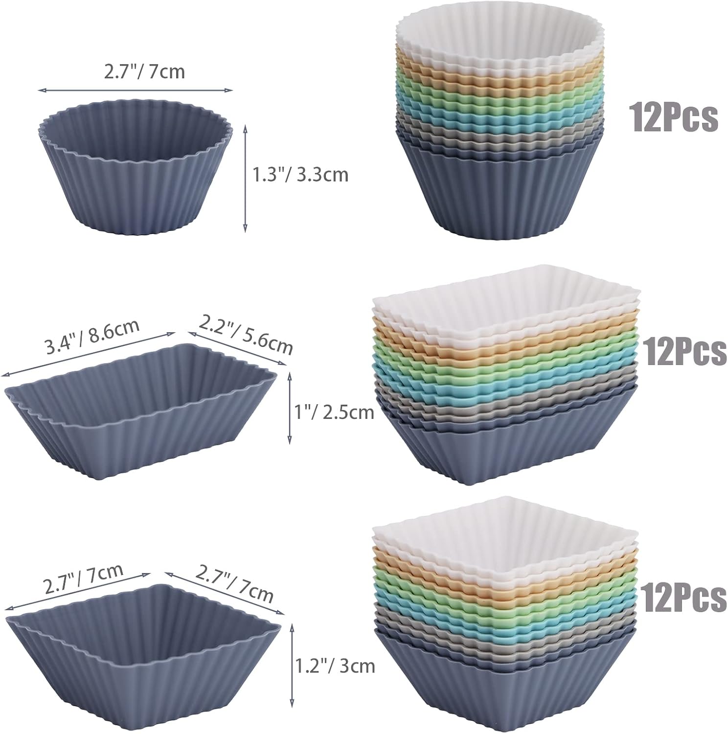 - A Variety of Shapes and Colors: Featuring three shapes-round, square, and rectangular. The diverse shapes and vibrant colors of these silicone cupcake liners enhance the visual appeal of food, making it more fun and enticing, especially for picky eaters, thereby increasing their willingness to eat.