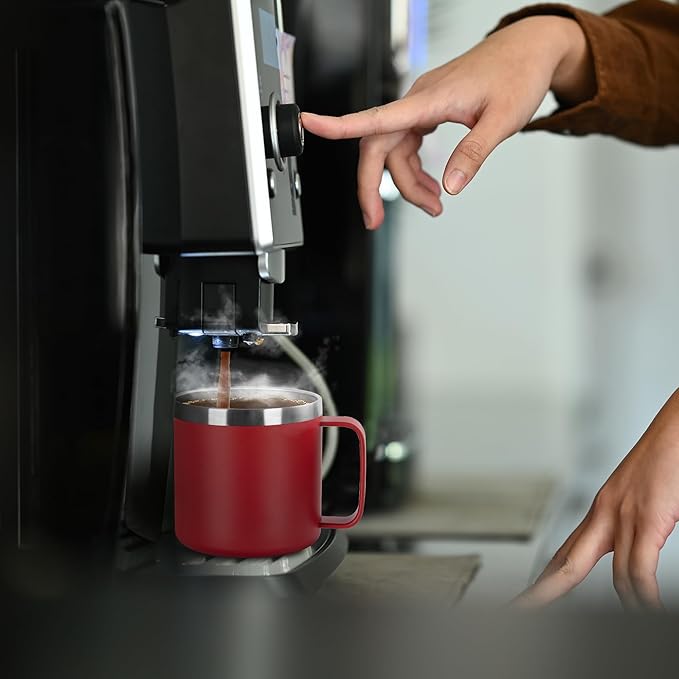 - Stainless Steel Coffee Mug: The 14oz coffee mug is ideal for home use, outdoor activities,camping, travel or work.Carry this travel coffee mug with you wherever you go