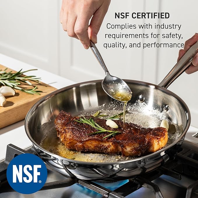 - Crafted for Performance Cooking: The heavy-duty tri-ply stainless steel construction ensures durability for years to come. Certified by NSF, this stainless steel pots and pans set meets the highest professional standards for quality and durability