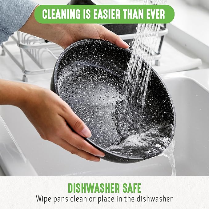 - EASY TO CLEAN: These pans feature a premium non-stick surface that cleans in a flash! Simply wipe with a paper towel or rinse with water – a quick hand wash is all it takes, and you're done.
