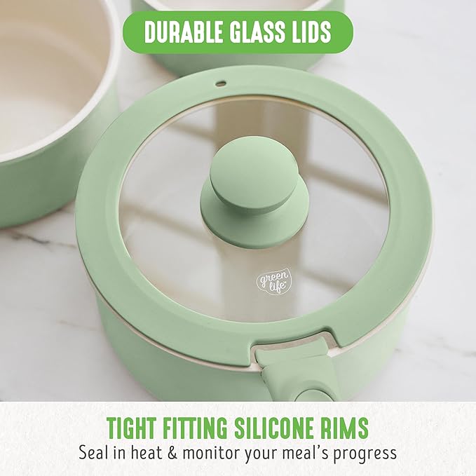 - GLASS LIDS WITH SILICONE RIMS: Each durable glass lid features a tight-fitting silicone rim to seal in heat while you watch from above.