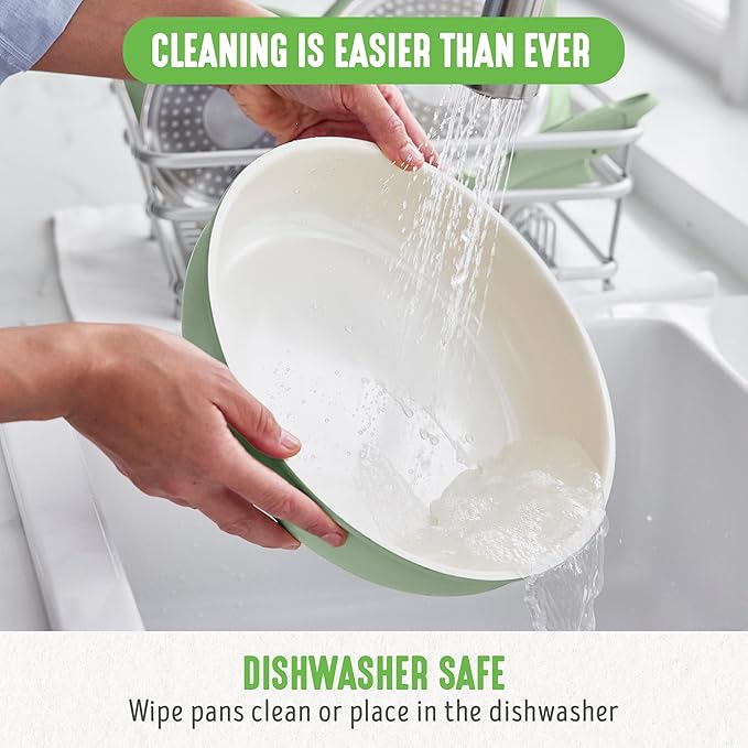 - TOXIN-FREE CERAMIC NONSTICK: Our healthy ceramic nonstick coating is derived from sand and free of PFAS, PFOA, lead, and cadmium for worry-free cooking. The incredible ceramic nonstick coating delivers easy releases, seamless transfers, and effortless cleaning.