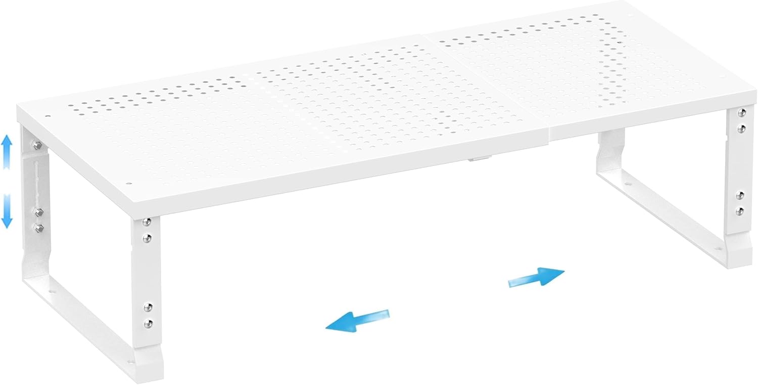 - âăExpandable,StackableăThe shelves can easily expand and contract according to your storage needs, whether it is kitchen clutter or office supplies.You can combine multiple shelves together to form a large storage system, or separate them into several separate smaller units(Measureďź10.24"D x 16.54"W~27.17"W x 8.31"H/7.68"H/7.05"H/6.42"H)