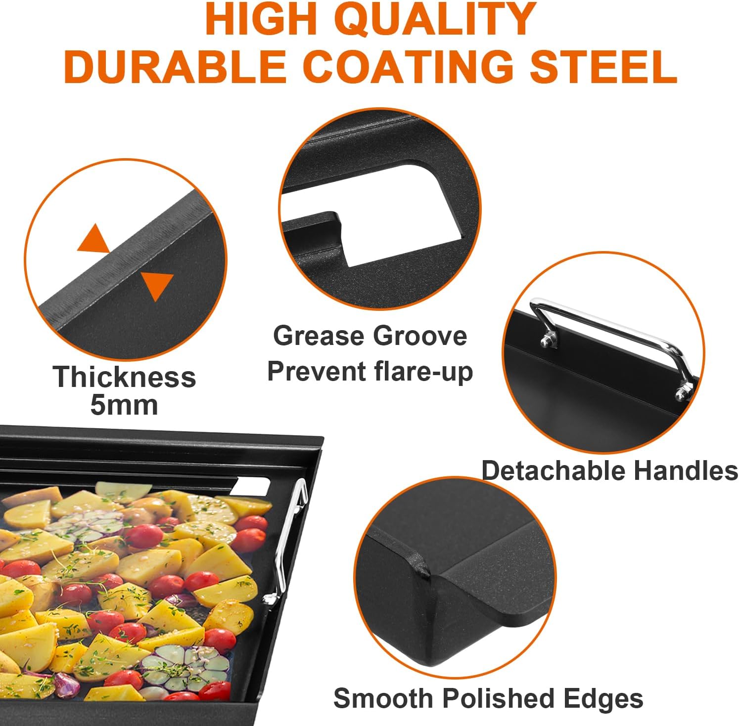 - 【Convenience & Versatility】The ergonomic handles facilitate easy movement of the griddle. The spacious cooking surface is ideal for preparing multiple items at once, making it perfect for family gatherings or parties.