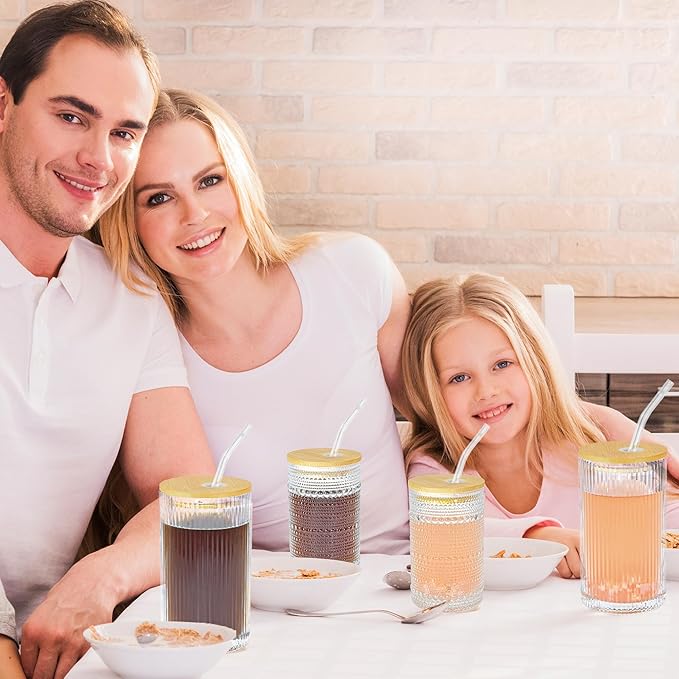 - Food Grade Material: This glassware which set with food grade soda-lime glass, BPA-free and lead-free. With a focus on product quality, this retro drinking glasses set is made of high quality materials and is built to last for hot or cold drinks. You can enjoy the convenience and pleasure of this glass tumbler with confidence.(Please place the bamboo lid in a dry and ventilated environment)