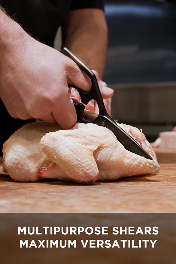 - Versatile Kitchen Scissors for Food: Designed for various kitchen tasks such as breaking down poultry, cutting flatbreads and pizza, opening stubborn packaging, trimming herbs, and cracking nutshells, the perfect stainless steel kitchen scissors all-purpose tool.