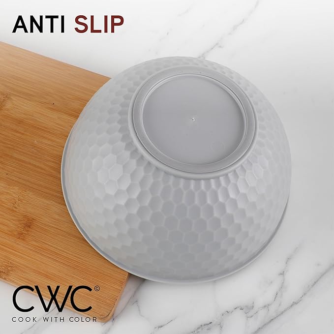 - Plastic mixing bowl set made of BPA free durable polypropylene and food safe material. Top rack dishwasher safe, microwave safe and freezer safe.