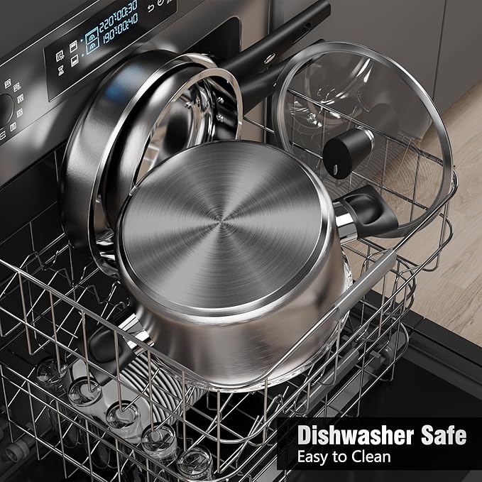 - 【Non-Toxic Cookware】Cooking pot set is made of food-grade stainless steel, rust and corrosion resistance. Stainless steel does not include coating, so 100% free of Teflon, PFOA, PFOS, PTFE, Lead, Cadmium. Ensures that your daily cooking is always safer and healthier.
