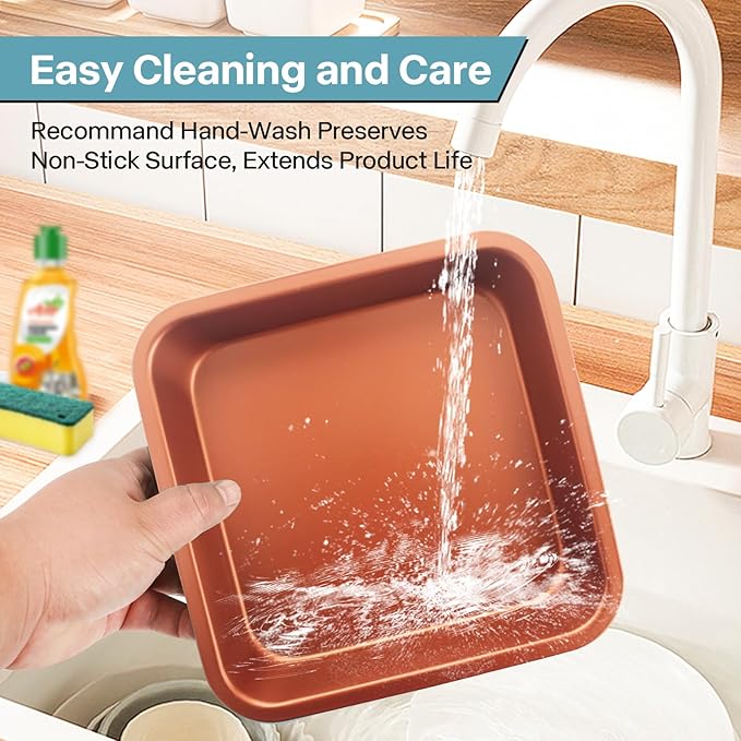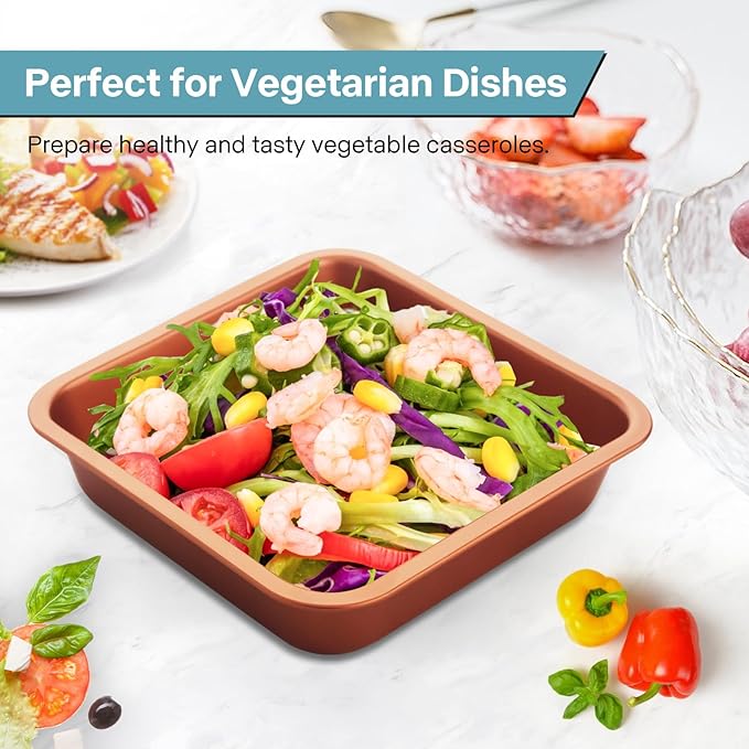 - Even Heating: The excellent thermal conductivity of the 8 inch square baking pan makes the heat distribution even, and the baked food is uniform in color and taste