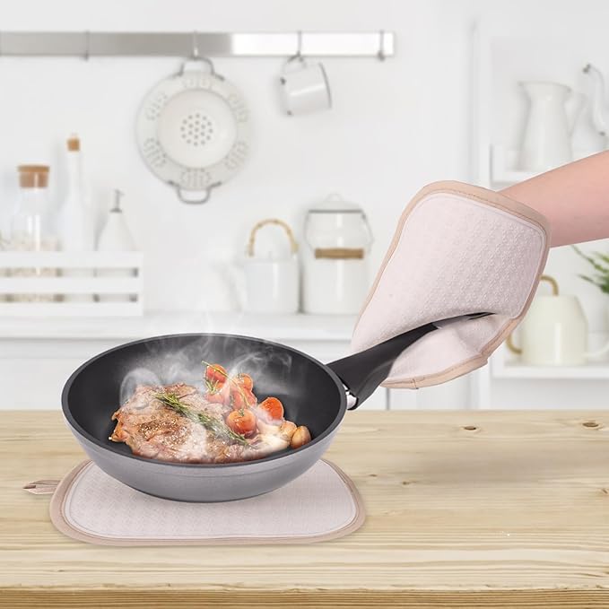- 【HEAVY-DUTY, EASY-TO-CLEAN GLOVES】Each pot holder's silicone surface provides a stronger, more resilient grip.They are easy to remove stuck-on foods grease and just some warm water and a little soap wipe them clean or just put them in the washing machine. Then lay flat to dry or tumble dry low.
